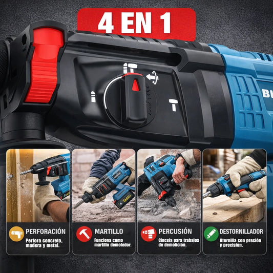 Rotomartillo Profesional Inalámbrico Taladro Cincel Alta Potencia para Concreto (2 Baterías)