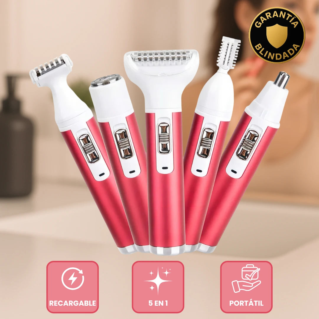 ¿Cansada de usar rastrillos que irritan o depilarte con cera que duele? Esta afeitadora 5 en 1 te deja la piel suave al instante, sin jalones, sin enrojecimiento y sin tener que salir de casa.